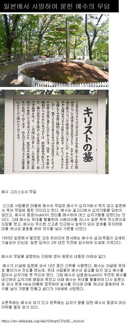 예수는 일본으로 도망쳐 늙어죽도록 살았어요